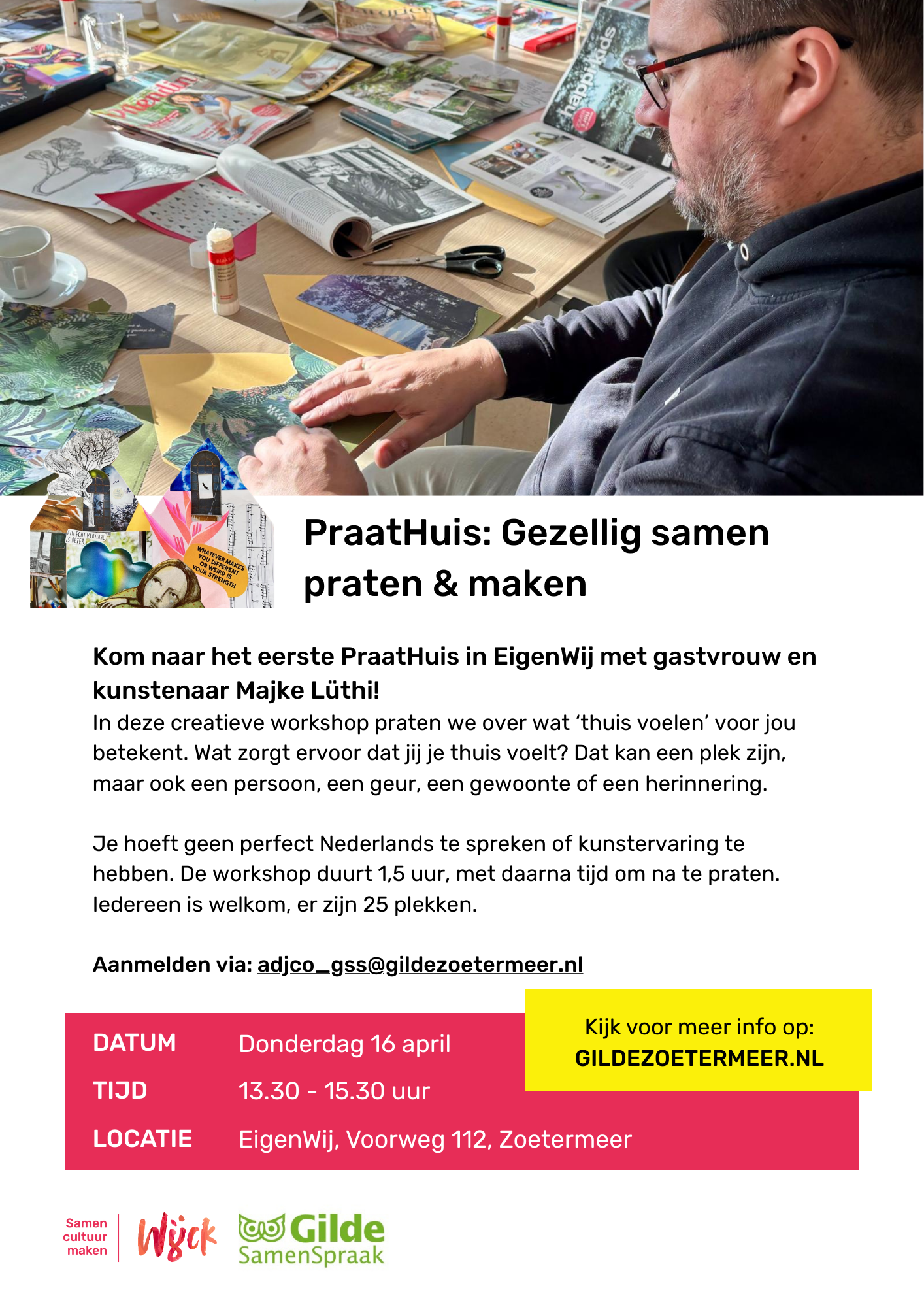 Kom naar het eerste PraatHuis in EigenWij met gastvrouw en kunstenaar Majke Lüthi.